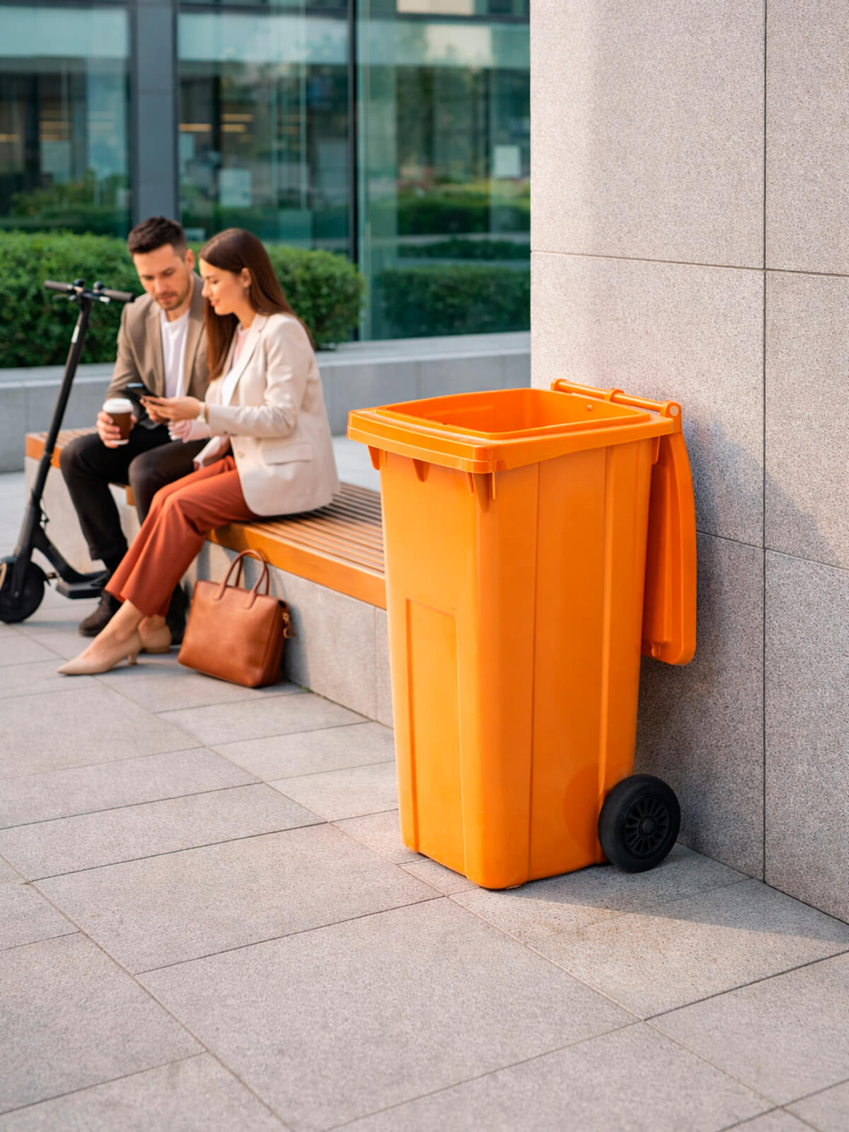 Контейнер для мусора 120 л на колёсах с крышкой, оранжевый — повышенная видимость и системный контроль отходов