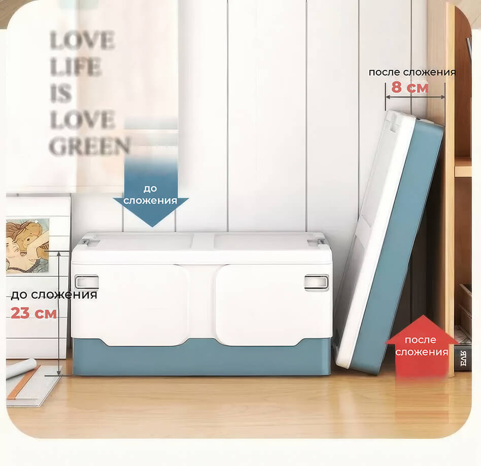 Пластиковая коробка с крышкой защищает содержимое от пыли и влаги, а прочная конструкция гарантирует надежность и долговечность. Складной контейнер легко складывается, экономя место, когда не используется, а удобные ручки обеспечивают комфортную переноску.